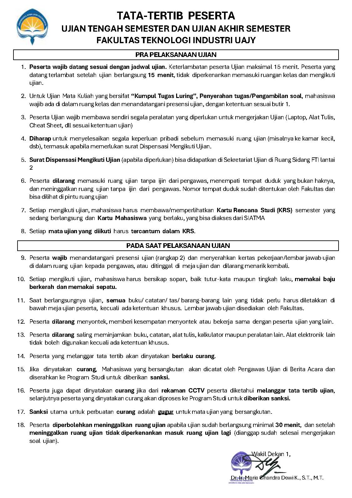 Peraturan Ujian Tengah Semester dan Ujian Akhir Semester